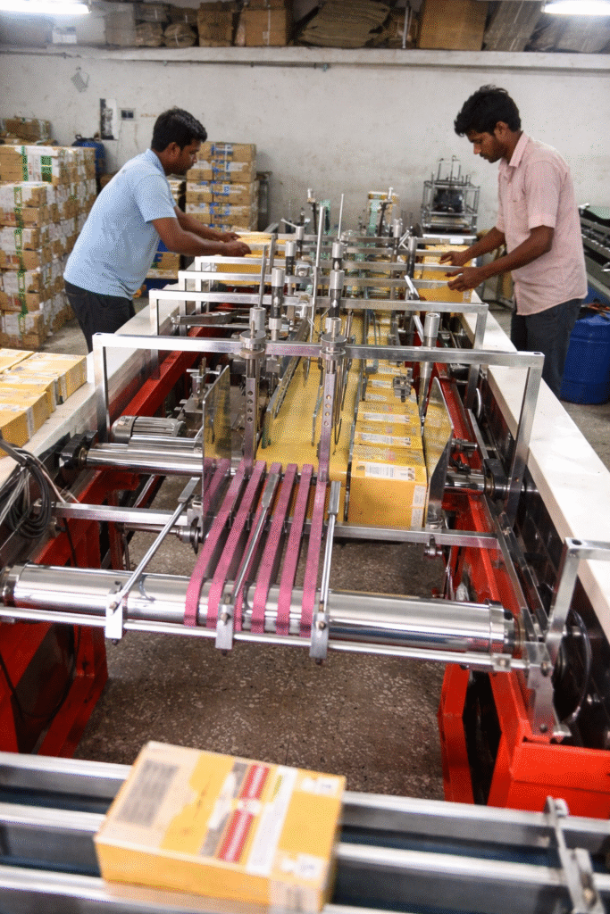 Box Side Pasting is the process of applying high-quality adhesive to the side flap of a printed and die-cut sheet to form a complete box structure.